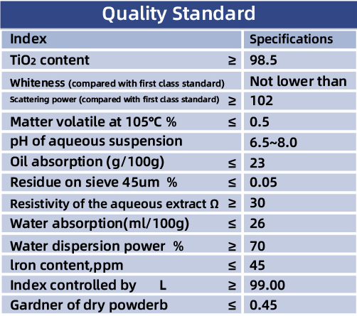 Characteristics: White appearance, bright color, blue gardner, soft and uniform particles with a narrow wide, good dispersion, high scattering power and scattering coefficient, low oil absorption and iron content.